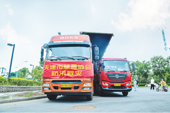 7月28日上午,董事長楊印江攜公司員工,趕往支援車輛現場,配合天津慈善協(xié)會進行物資配送及裝車工作。物資裝載完畢后,統(tǒng)一送往河南周口市災區(qū)。